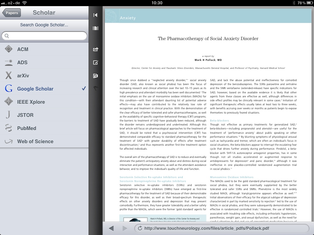Und wer sich auf seinem iOS Gerät oder seinem Mac eine Literaturdatenbank zurecht legen will, die alle Artikel perfekt verwaltet, und aus der man direkt eine google scholar oder pubmed Suche machen kann, und dann die gefundenen Artikel auch gleich perfekt katalogisiert importieren will, frei durchsuchbar und verwaltbar, der guckt sich ‚papers‘ an. Das funktioniert perfekt. Meine Empfehlun