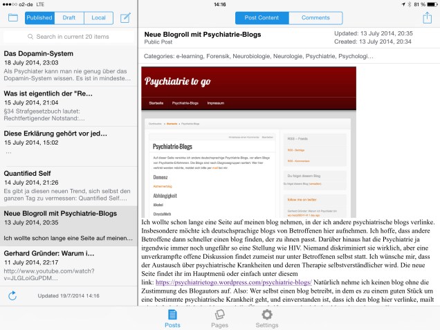 Man kann neben neuen und alten posts auch seine Seiten und die Kommentare komfortabel verwalten. Mir gefällt das sehr gut.