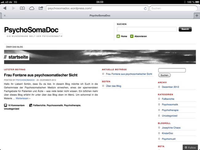 Und so freue ich mich ganz besonders, mit PsychoSomaDoc einen neuen blog in meinen RSS reader aufnehmen zu können.